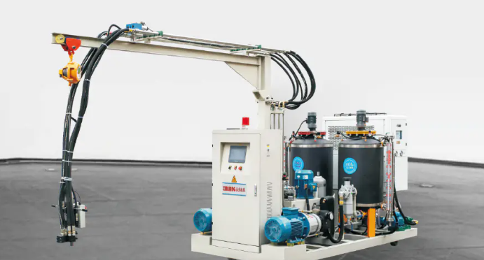 기계는 제어된 압력과 유량으로 저장 탱크에서 혼합 헤드로 원료를 펌핑합니다. 혼합 챔버 내부에서는 재료가 고속으로 충돌하여 완전한 혼합이 보장됩니다. 그런 다음 혼합된 재료를 금형에 주입하면 화학 반응으로 폼이 팽창하고 경화됩니다.